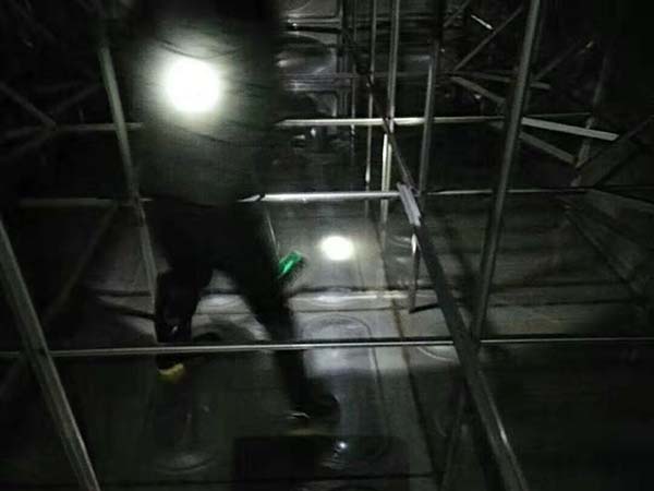 在清洗水箱的過程中,消毒人員須帶護眼鏡、口罩,如在水箱內感到